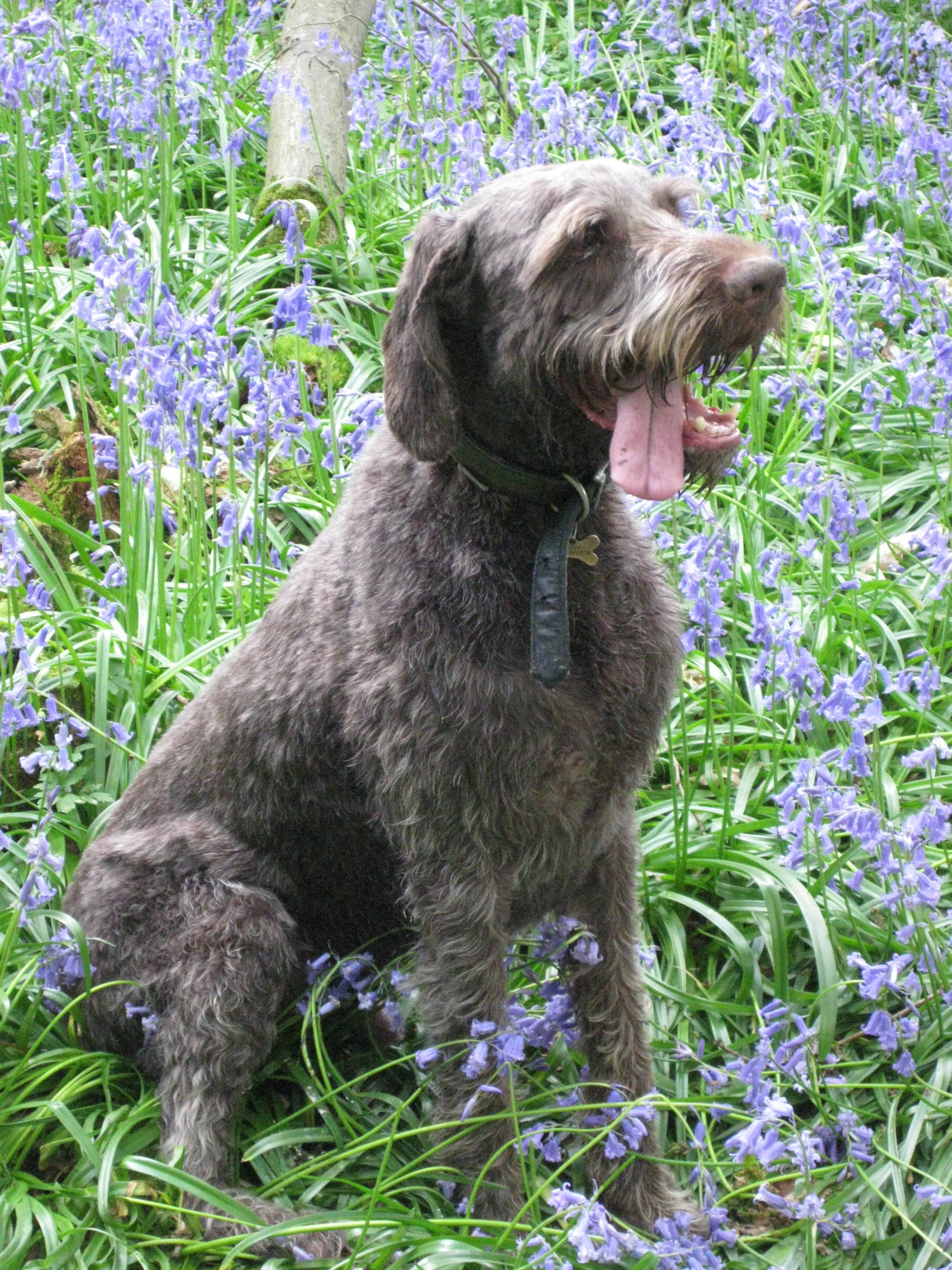 Bank Holiday Monday. Dodging the showers and braving the cold winds we took Eric for a run in the bluebell woods on the Hucking Estate, a Wood Land Trust estate, near Maidstone. Fabulous views over the North Downs. Could have done with a hot coffee in the pub, but settled for a half of good local beer. Eric had to make do with the communal doggie bowl
