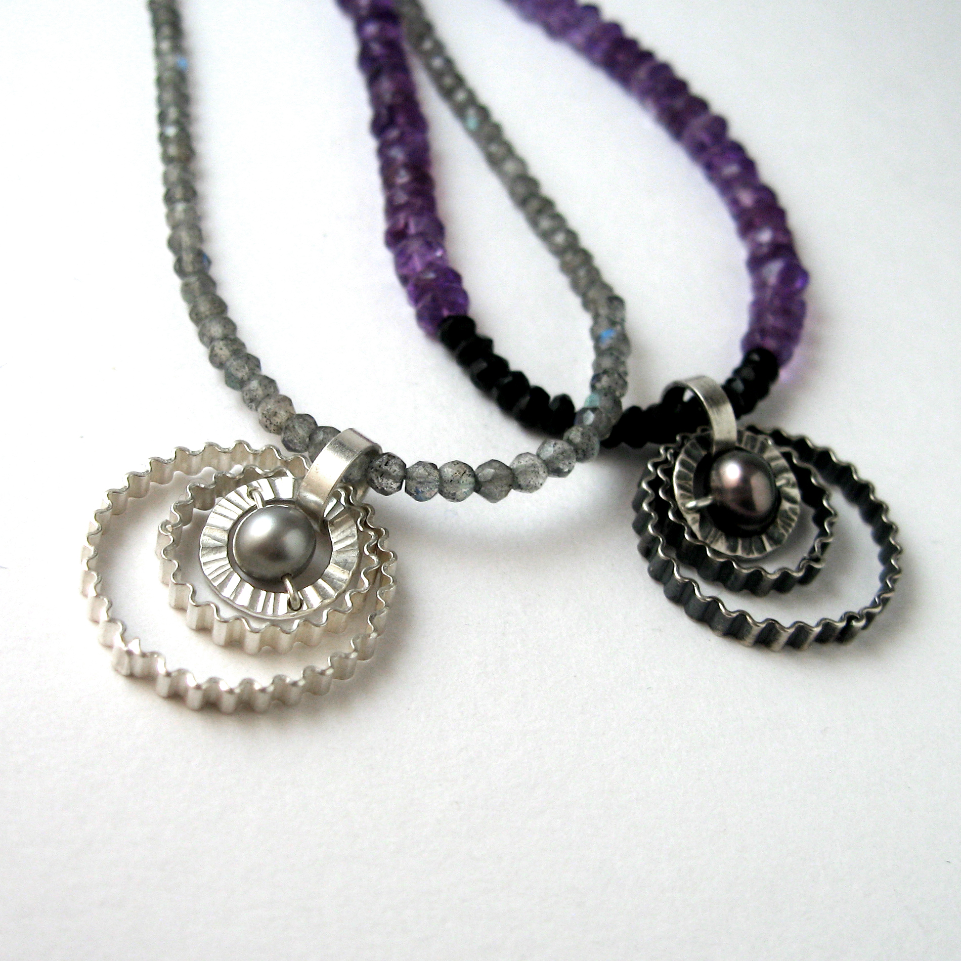 From my studio in Cockpit Arts, London, my main focus is to create beautifully crafted jewellery, which are at once precious and evocative, quirky and graphically-pleasing. The layering effect achieved with paper in turn inspires the range in corrugated silver, oxidised or with 18ct gold-plating and semi-precious stones. Still uncompromisingly modern, this range features highly wearable pieces which will become lovely daily companions.