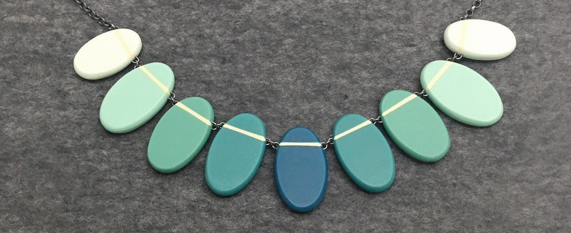 Karen creates bold, playful, colourful jewellery from resin and silver. She’s inspired by linear shapes found in nature, and recurring patterns. We asked Karen to tell us a bit about her work.