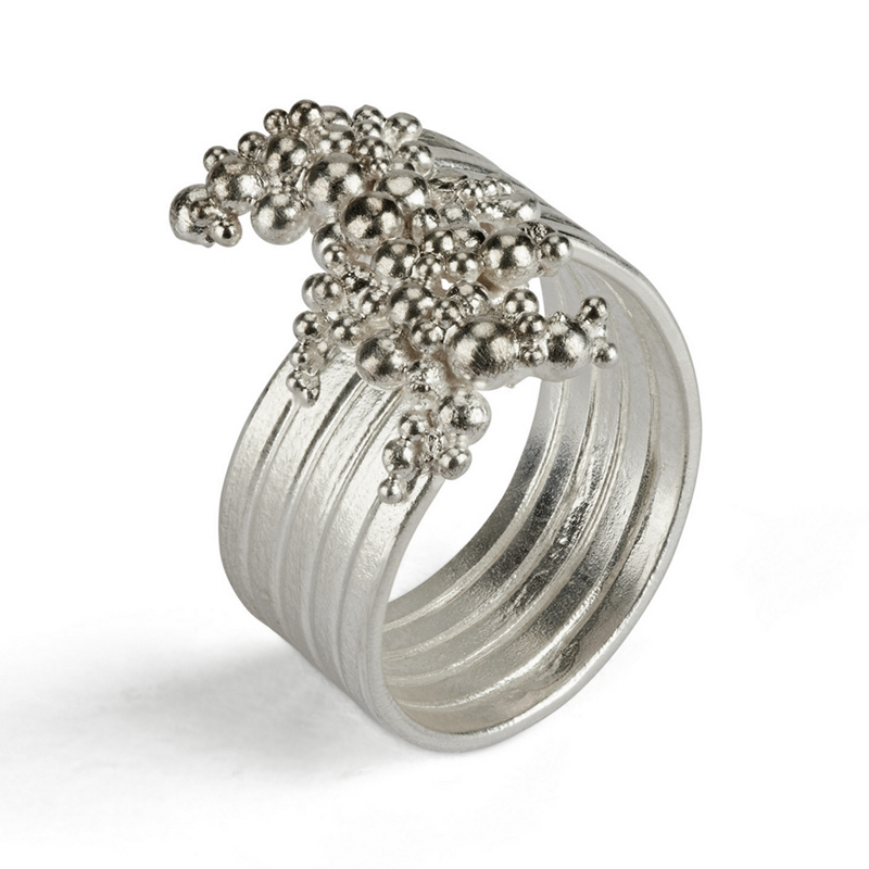 I’m a big fan of Hannah Bedford’s work, and this ring captures her signature aesthetic brilliantly. The band has been designed as such to make it look as through you are wearing multiple rings that come crashing together in a wave-like crescendo of silver granulation. It is a beautiful combination of goldsmithing craft and artistry that is hard to resist.