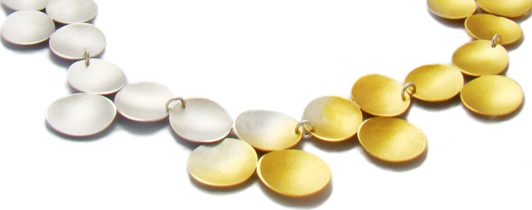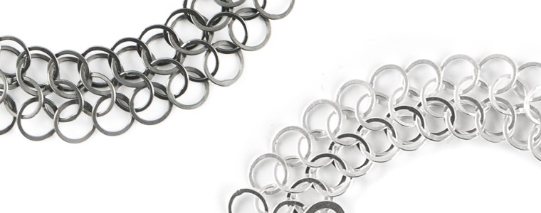 The circle is forever the starting point for each of Joanne's jewellery designs. Inspired by Ancient chain maille patterns, Joanne experiments with the scale, weight, form and texture of the chains, making necklaces, bracelets and earrings which are voluminous yet light, tactile and extremely durable.