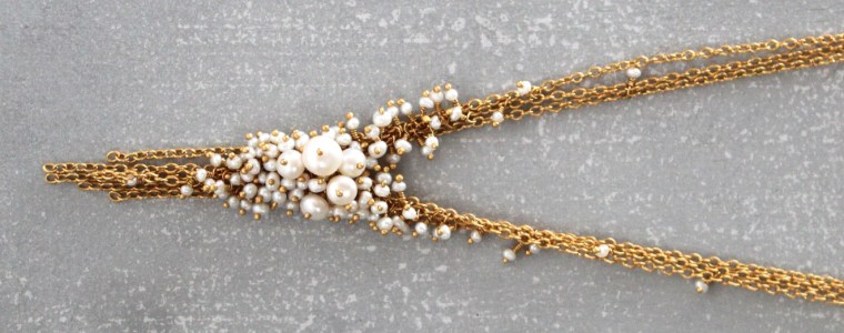 This month we welcome Kate Wood to lovedazzle. Kate makes feminine, ethereal jewellery using fine beading and chain work techniques. Using freshwater pearls and tiny faceted gemstones, her beaded designs take their cue from natural forms, growth patterns and textures.